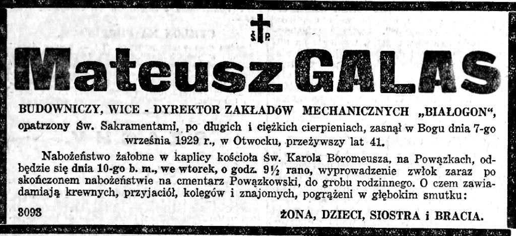Nekrolog Mateusza w „Kurjerze Warszawskim”.