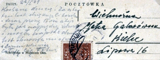 Kartka pocztowa, pisana własnoręcznie przez Mateusza Galasa do córki Matei Galas strona 1